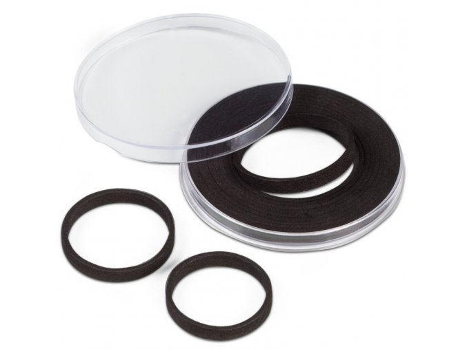 CAPS / GRIPS XL 53-101 mm Ø - extra velká kruhová kapsle na mince s černou vložkou s nastavitelným průměrem výřezu pomocí vyndávacích kroužků - vnější Ø 111 mm - 1 kus - kusový prodej - Leuchtturm 347616
