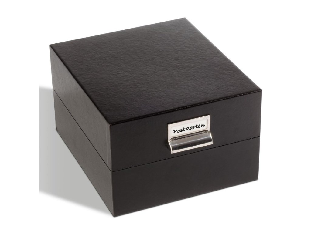 Archivační box na velké pohlednice, FDC, dopisy, certifikáty, sady mincí, bankovky a mnoho dalšího až do formátu 220 x 168 mm (DIN A5). Vnitřní uspořádání boxu je flexibilní díky 3 vyjímatelným přepážkám. Odolné provedení zaručuje bezpečné uchování i při dlouhodobém používání. Box má kovovou rukojeť s okénkem na štítek pro označení obsahu.