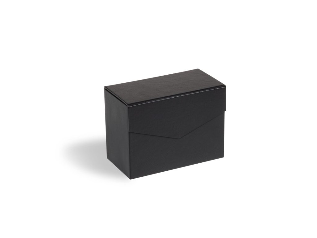 | Materiál: | Stabilní pevná kartonová krabička je potažena černou tapetou s texturou a povrchovou úpravou imitující kůži. |