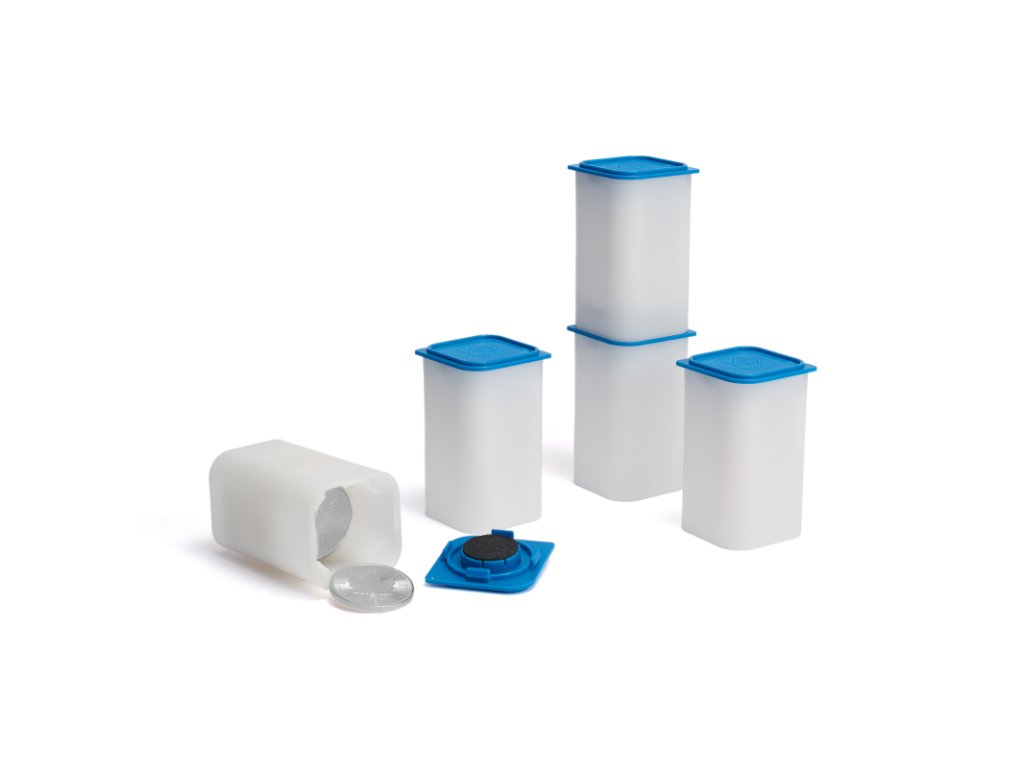 Čtvercová stohovatelná tuba na mince SQUBE nabízí bezpečné řešení pro dlouhodobé uložení až 20 ks uncových stříbrných mincí do průměru 38-39 mm (např. na stříbrné investiční mince 1 Oz Maple Leaf ). Díky inovativní otočné funkci víka tuby je tuba bezpečně uzavíratelná a zárověň snadno otevíratelná jednoduchým otočením uzávěru ve směru šipky.