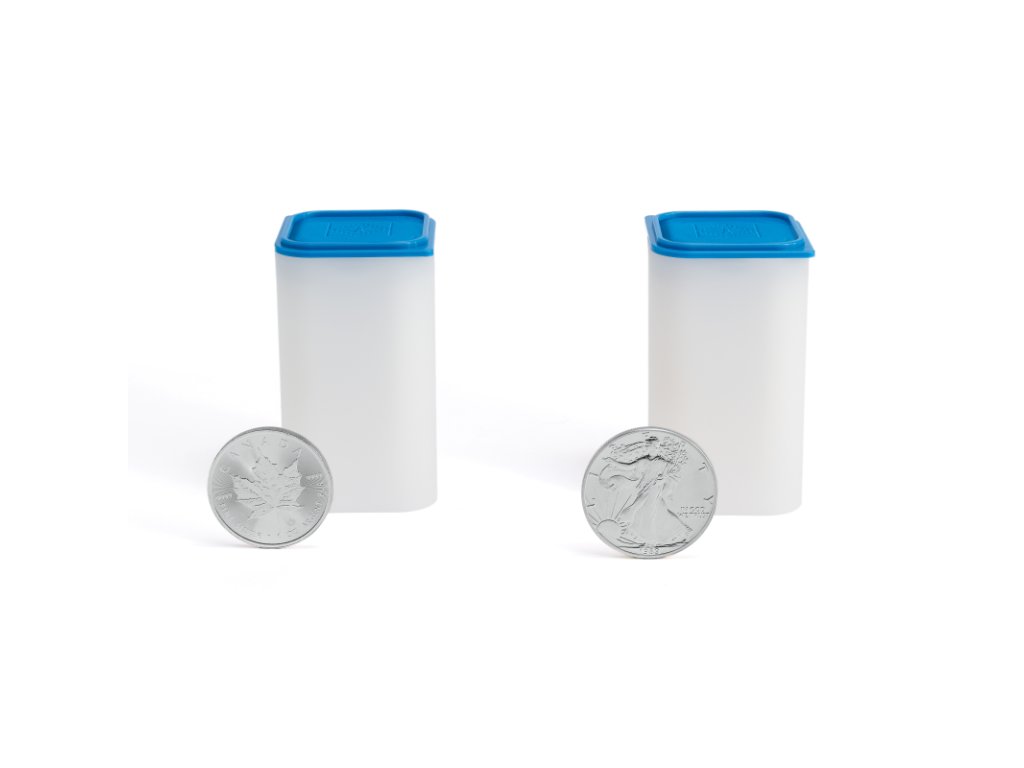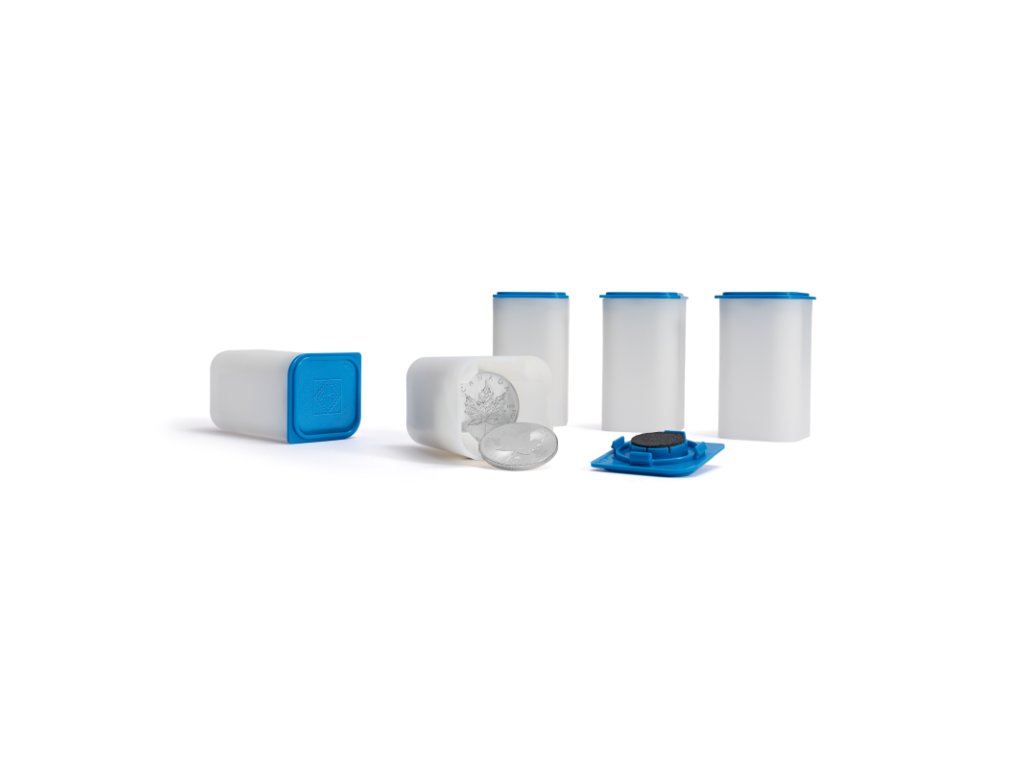Čtvercová stohovatelná tuba na mince SQUBE nabízí bezpečné řešení pro dlouhodobé uložení až 20 ks uncových stříbrných mincí do průměru 40-41 mm (např. na stříbrné investiční mince 1 Oz American Eagle). Díky inovativní otočné funkci víka tuby je tuba bezpečně uzavíratelná a zárověň snadno otevíratelná jednoduchým otočením uzávěru ve směru šipky.