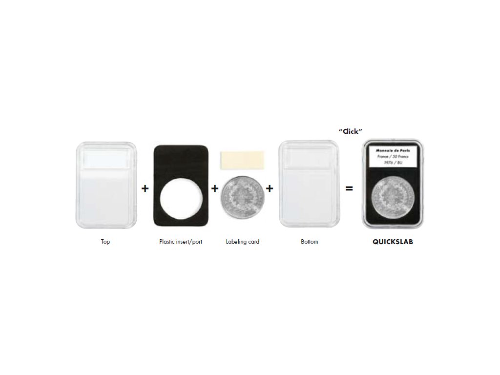 Díky shodným vnějším rozměrům klasických obdélníkových kapslí QUICKSLAB můžete uložit mince různých velikostí v jednom z nejednoduchších mincovních systému (podobně jako u kartonových mincovních rámečků). Pro bezpečnou a velice elegantní úschovu kapslí QUICKSLAB slouží celá řada kvalitních kazet,etuí, boxů, plat či albových listů. Přehled úložných kazet na Quickslaby.