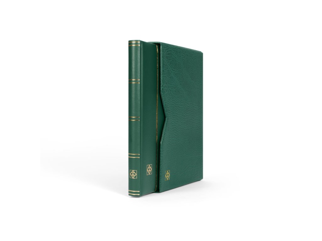 Zelené album na známky řady PREMIUM 32 v koženkovém provedení s ochrannou kazetou.